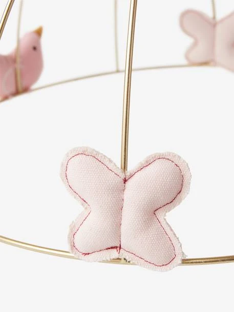 Le métal filaire modernise cet abat-jour poétique et aérien ! Une représentation de cage à oiseaux où sont appliqués quelques papillons et oiseaux colorés !