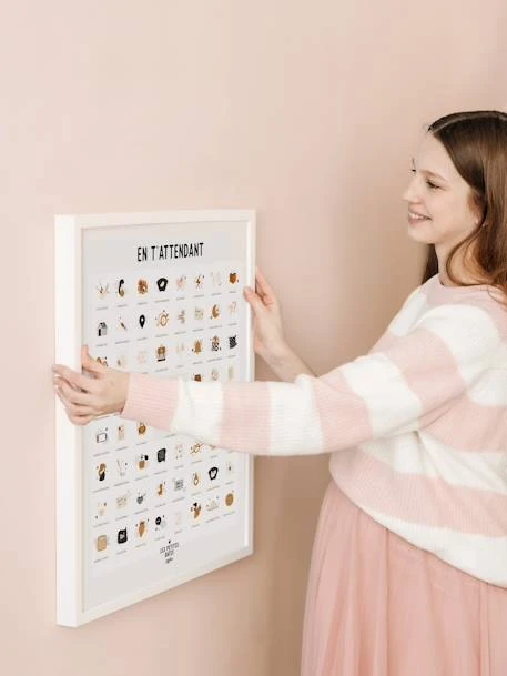 L’échographie du premier trimestre, le début du congé maternité, les premiers coups de pieds, les premières contractions… Tous les petits moments magiques de la grossesse sur une affiche.