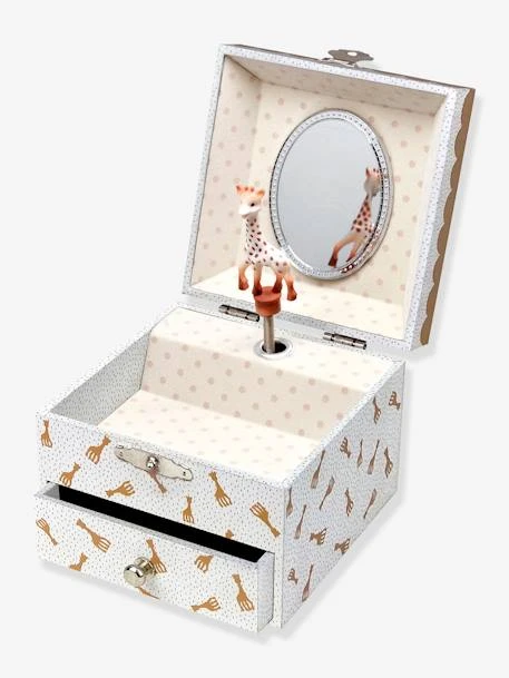 Cette jolie boîte à musique en forme de cube et disposant d’un tiroir émerveillera votre enfant qui y rangera ses trésors ! Actionnez la manivelle et la figurine Sophie la Girafe s’anime comme par magie au son de la musique ! Le petit plus ? Elle brille dans la nuit pour amuser et rassurer votre enfant.
