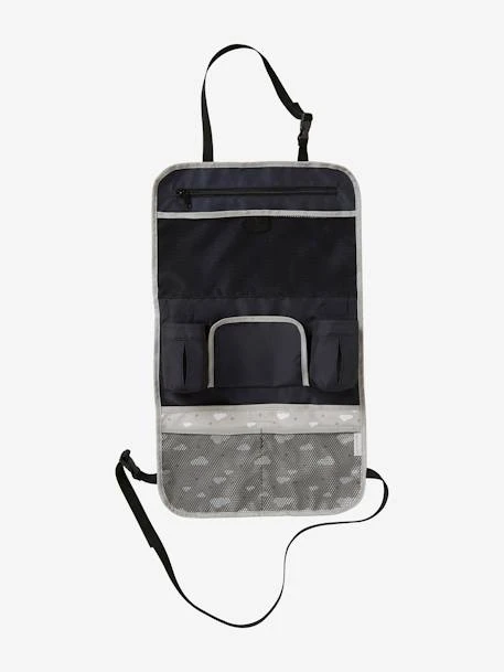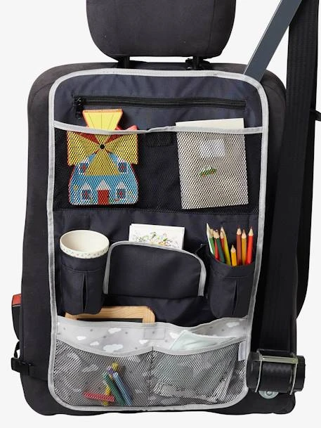 Un organisateur de voiture très utile pour les voyages en voiture : avec ses grandes poches et ses nombreux compartiments pour ranger livres et jouets, il sera votre meilleur allié pour partir en vacances ! Cet organisateur de voiture se fixe simplement sur le dossier conducteur ou passager grâce à un système de sangles ajustables. Cet organisateur de voiture peut aussi faire fonction d’organisateur de poussette : il suffit de plier l’article en deux et d’utiliser les sangles munies d’anneau.