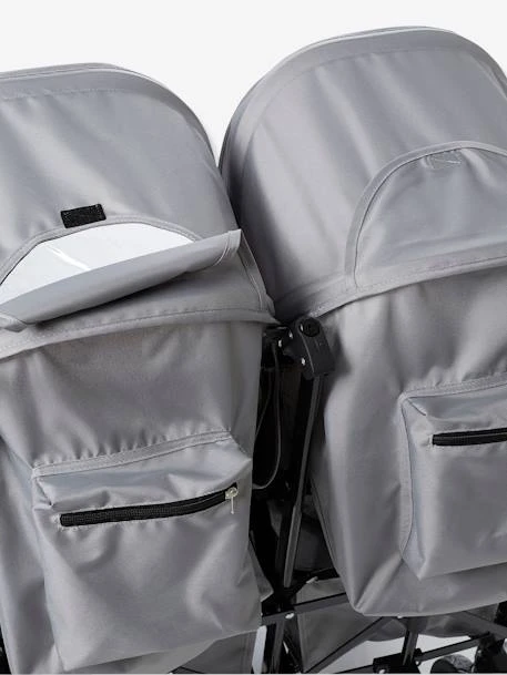 - Capotes individuelles amovibles avec chacune fenĂŞtre de surveillance et poche zippĂ©e Ă l’arrière pour y glisser tout le nĂ©cessaire de bĂ©bĂ©