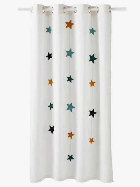 Ce rideau en toile bâchette de qualité habille joliment la fenêtre et offre au regard de belles guirlandes d’étoiles.